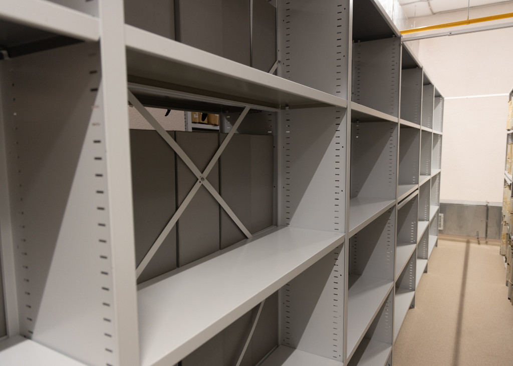 Стеллажи металлические закрытого типа с дверцами и замками позволяют ограничить доступ к хранимым документам.