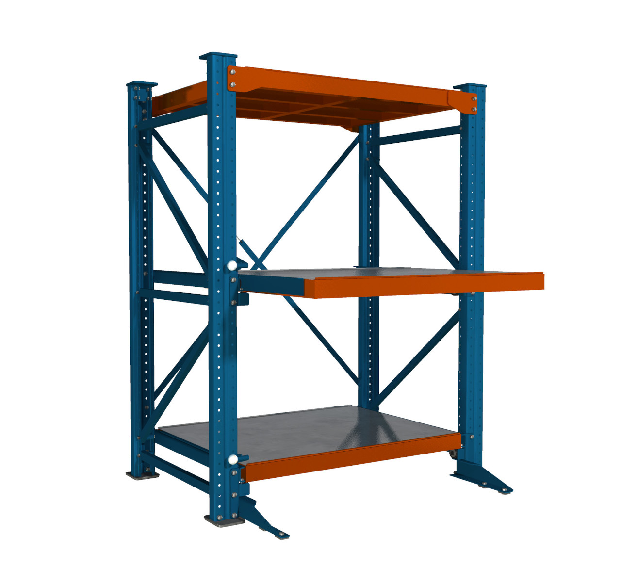 Каждая полка выдерживает нагрузку до 1000 кг и выдвигается на 70%, что обеспечивает удобный доступ при сохранении устойчивости конструкции.