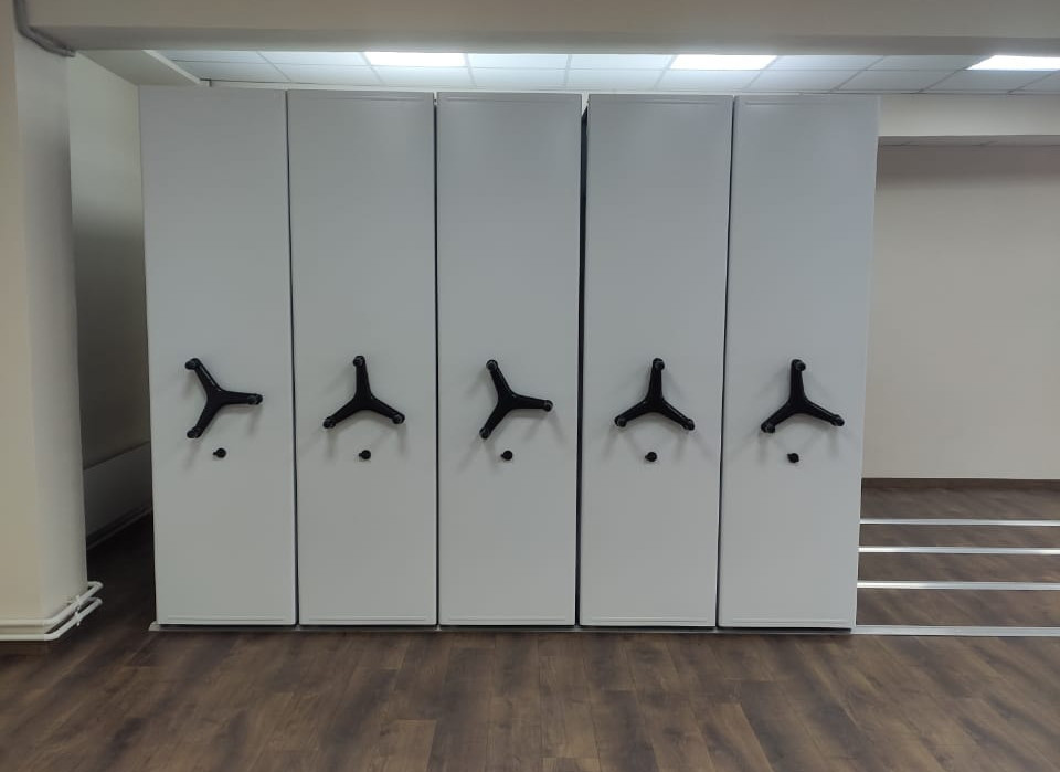 Мобильный архив - это системы хранения практически любых видов документации. Папки, короба, справочная литература, чертежи, проектная документация, CD-диски – всё это может храниться на полках и в ящиках передвижных стеллажей.